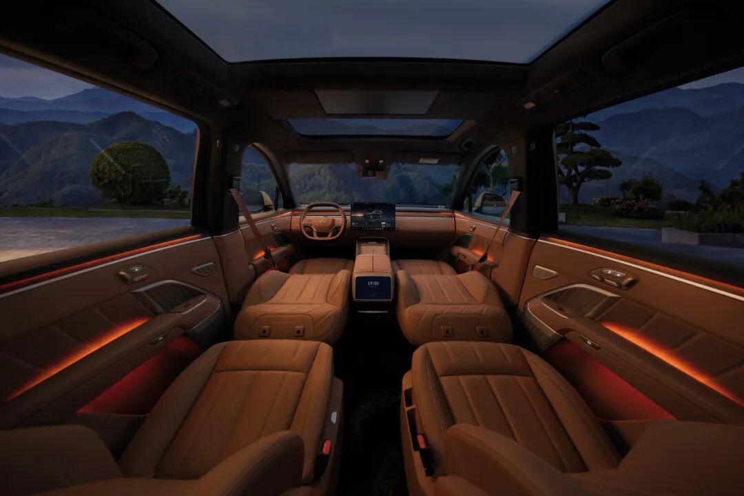 车身尺寸为5145×1998×1766mm,轴距3110mm,提供6座、7座两种布局可选。内饰延续环抱式豪华座舱,Nappa真皮座椅、手工缝线细节尽显质感,前排12向电动调节、二排零重力座椅、三排38°可调靠背,实现“座座舒享、排排可躺”的舒适体验。240L可冲洗前备舱+私密储物设计,轻松容纳年货、户外装备等各类物品,脏污一键冲洗,出行更从容。
