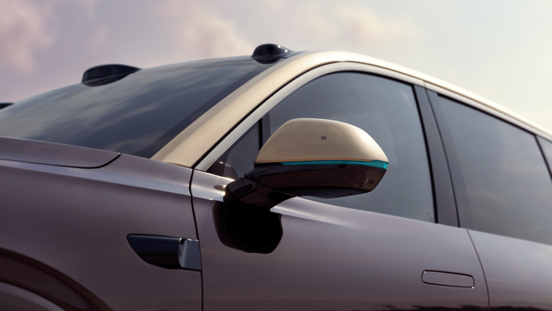 外后视镜曲面分缝中隐藏智能小蓝灯,辅助驾驶启用时自动点亮,智驾状态一目了然,细节设计尽显巧思。