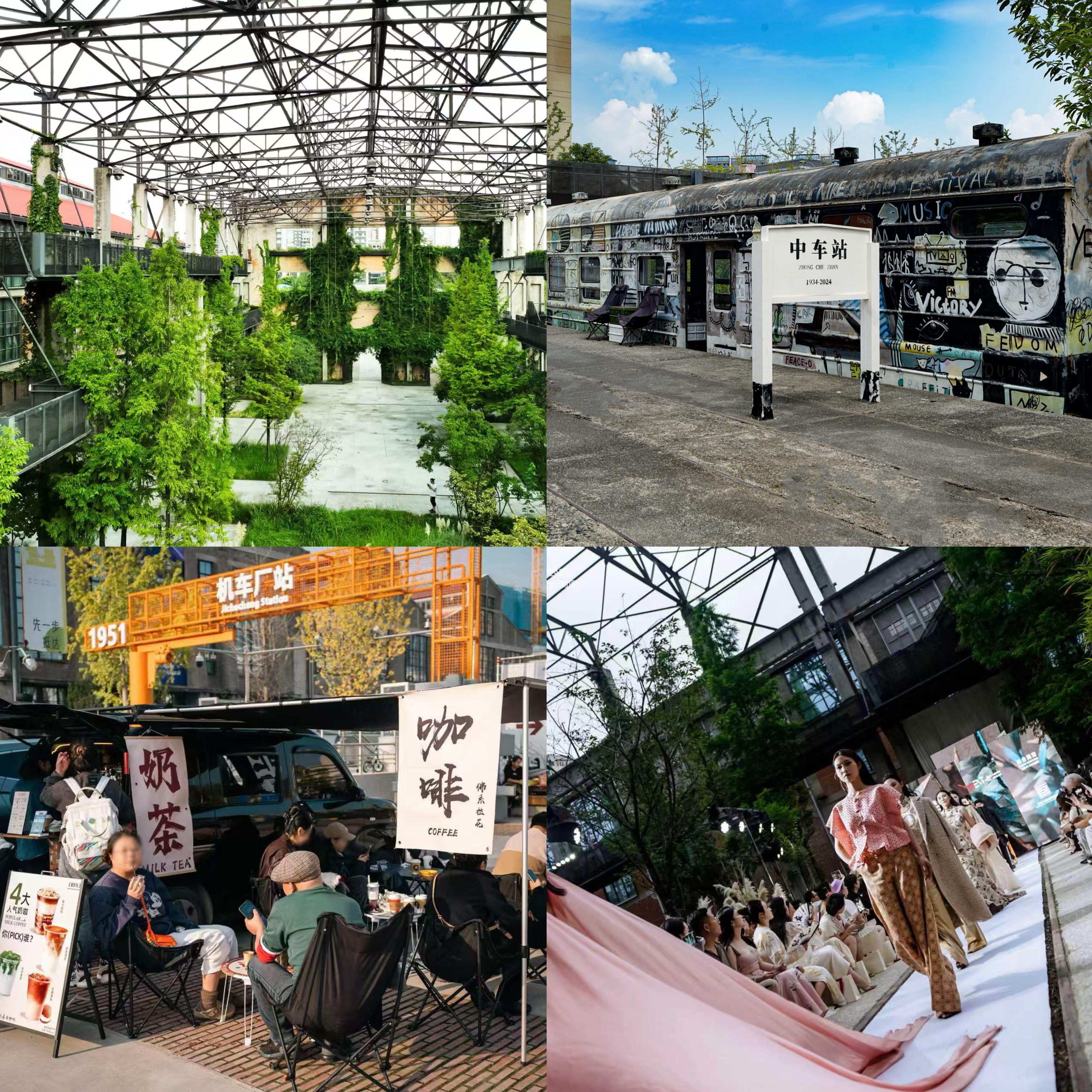 高大的厂房骨架被完整保留,但内部功能已彻底重塑:原来吊装零部件的车间,如今成为汇集脱口秀剧场、Livehouse和潮流设计品牌的复合空间;曾经的货运通道,变身网红咖啡馆与滑板公园的交错地带。